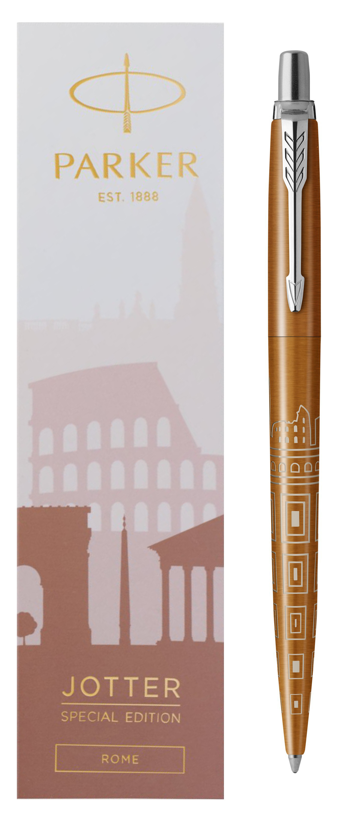 Ручка шариковая Parker Jotter Rome Bronze CT от официального дилера Parker в Невинномысске. Вы можете дополнительно заказать гравировку, которая подчеркнет Вашу оригинальность и придаст памятность статусному подарку. Все ручки Паркер поставляются в фирменном футляре.