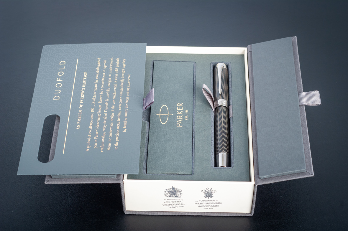 Ручка роллер Parker Duofold Prestige Centennial Black Chevron CT от официального дилера Parker в Невинномысске. Вы можете дополнительно заказать гравировку, которая подчеркнет Вашу оригинальность и придаст памятность статусному подарку. Все ручки Паркер поставляются в фирменном футляре.